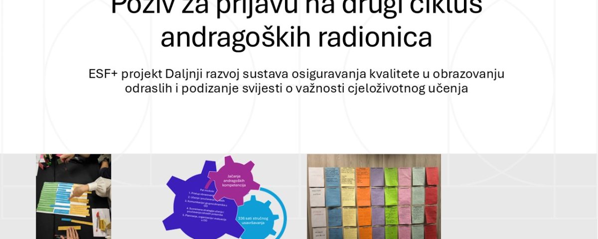 Vremenik održavanja drugog ciklusa andragoških radionica nalazi se na poveznici. Agencija zadržava pravo promjene termina i mjesta održavanja drugog ciklusa andragoških radionica.